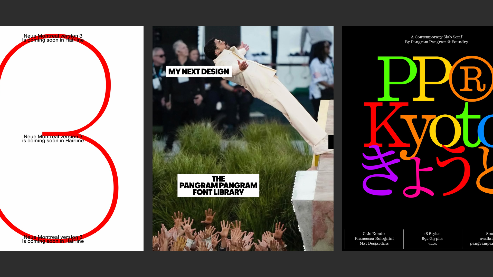 So we partnered with Pangram Pangram — one of the best type foundries out there. If you're a designer, you probably already know their work. Neue Montreal, Editorial New, Frama, Monument, Mori and many others.